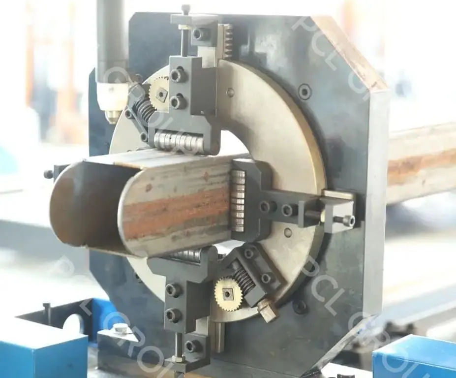 Cutting round pipe: the cutting head can rotate and move along the surrounding trajectory of the pipe, thus realizing the cutting of round cross-section pipes, such as round pipe, cylinder, etc.